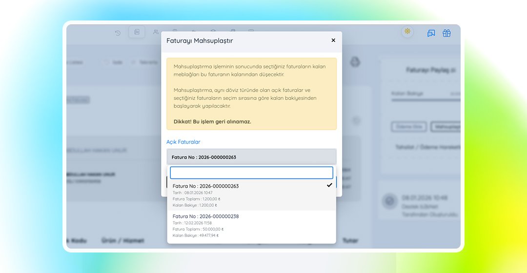 Bu özellik sayesinde karşılıklı fatura kesilen işlemlerde manuel hesaplama ihtiyacı ortadan kalkar. Sistem, ilgili faturaları mahsuplaştırarak bakiye durumunu otomatik olarak günceller.